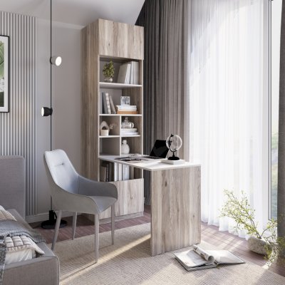 Стол-шкаф "Урбан" – это минималистичная стильная модель, которая подойдет для учебы и работы. Особенность данной модели – встроенный вертикальный блок с полками для хранения книг, документов и техники.